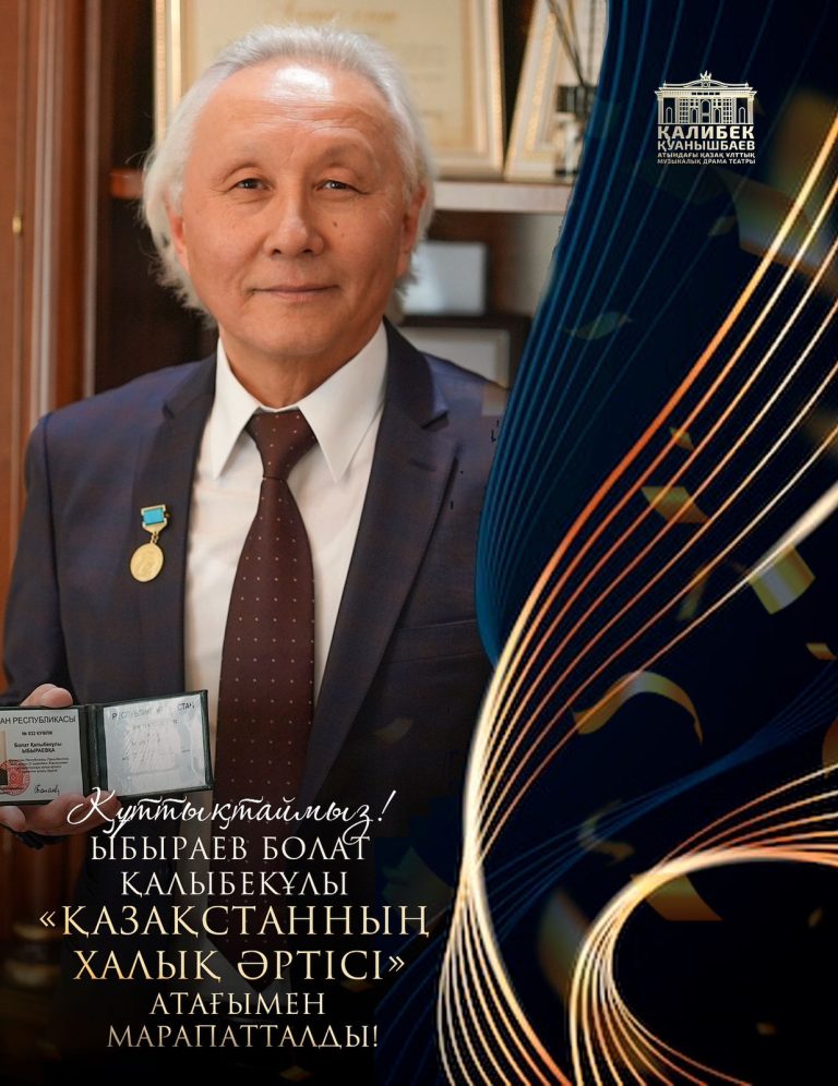 Қазақстан Республикасының ұлттық мерекесі Республика күні қарсаңында Президент Қасым-Жомарт Тоқаевтың Жарлығымен мемлекетіміздің мәдени дамуына қосқан елеулі үлесі үшін театрымыздың негізін қалаушы, актер, Қазақстанның еңбек сіңірген қайраткері Ыбраев Болат Қалыбекұлы «Қазақстанның халық әртісі» құрметті атағымен марапатталды!