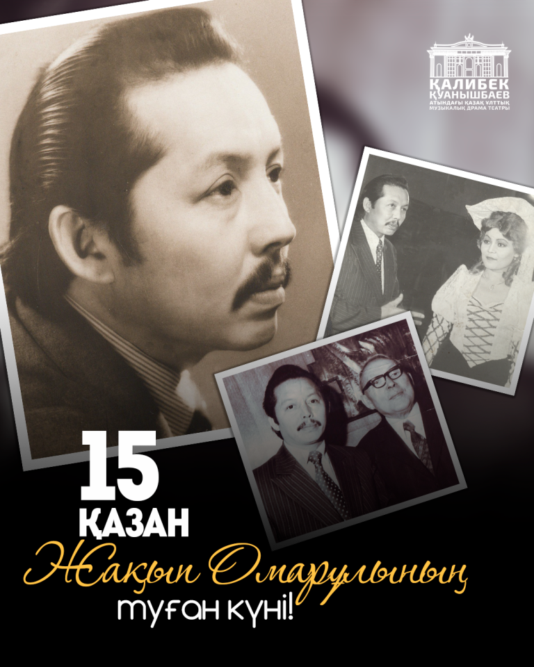 Бүгін, 15 ҚАЗАН – Қалибек Қуанышбаев атындағы Қазақ ұлттық музыкалық драма театрының негізін қалаған режиссер, Қазақстанның еңбек сіңірген қайраткері ЖАҚЫП ОМАРҰЛЫ дүниеге келген күн!