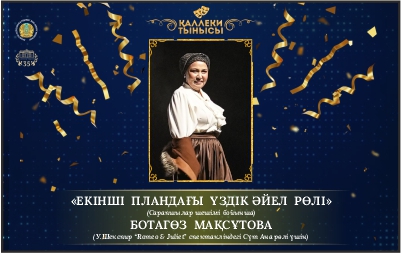 Номинация «Лучшая женская роль второго плана» была присуждена Ботагоз Максутовой за роль Кормилицы в спектакле «Romeo & Juliet».