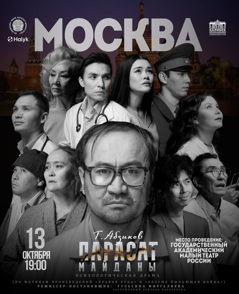 В рамках Дней культуры Казахстана в Российской Федерации Казахский национальный музыкально-драматический театр имени Калибека Куаышбаева представит московскому зрителю спектакль «Парасат майданы». Специальный показ состоится 13 октября в 19.00 на сцене Малого театра.